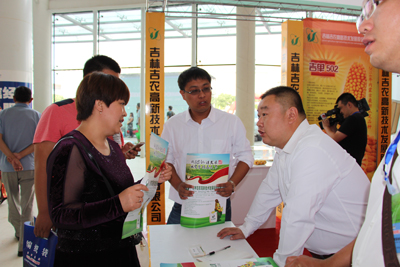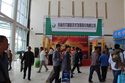 展會上我公司展示了吉單513、吉單502、吉單27、吉單35、吉單53等優(yōu)良玉米新品種以及實物樣品。其中吉單513、吉單502新品種受到了廣大經銷商及種植戶的高度關注。吉單513米質好、籽粒深、封頂性好、整體產量超群,年季間表現(xiàn)穩(wěn)定,根系發(fā)達,活桿成熟。吉單502封頂性好、抗逆性強、年際間表現(xiàn)穩(wěn)定、活稈成熟。這兩個品種特別適合內蒙地區(qū)大田種植,在前期田間示范推廣種植中表現(xiàn)超群。